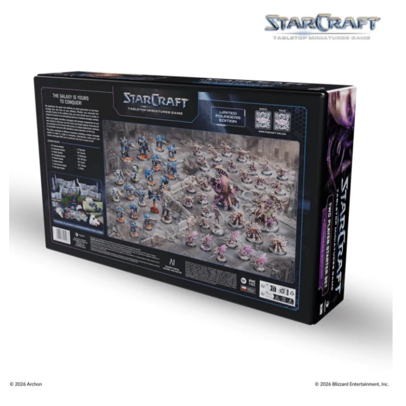 Relive one of StarCraft's most iconic conflicts, this time on your tabletop! This two player starter set lets one side take control of the endless Zerg swarm with Kerrigan - the Queen of Blades at the helm, while the other side plays as the adaptive Terrans, with rebel leader Jim Raynor in control. Build your army and fight for control over key objectives, as every action leaves lasting consequences for the future of the Koprulu sector!